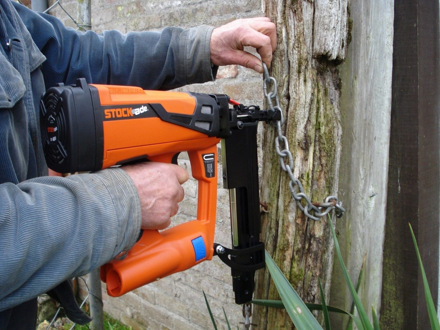 la Clouteuse agrafeuse Stock ade ST400i facilite le geste de prendre le fil et le pousser vers le pieu en bois